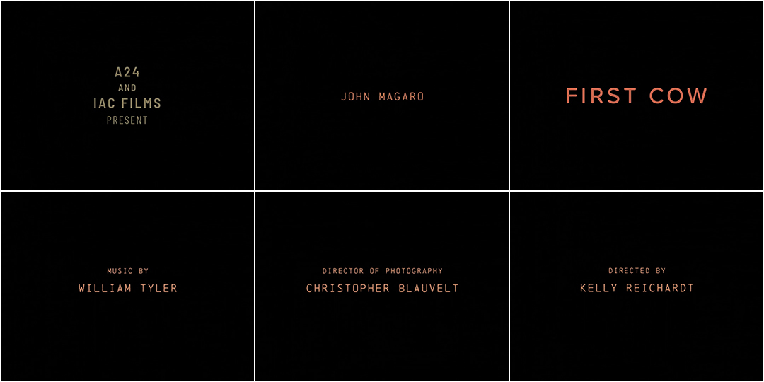 First Cow (2020) main title card First Cow (2020) epigraph First Cow (2020) end crawl Credits Title Designer: Susanne SasicMusic: William Tyler Support Art of the TItle Related Certain Women summary Old Joy summary Night Moves summary Butch Cassidy and the Sundance Kid summary Once Upon a Time in the West summary The Big Country summary