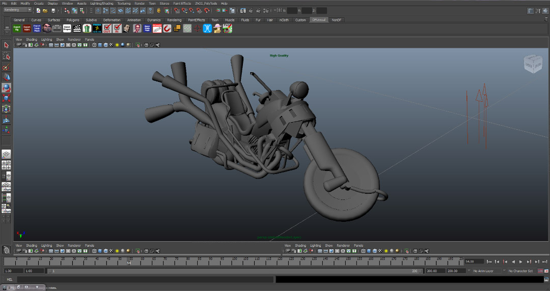 Larry: For those close-up shots, Peter ended up going in there and painting over the pipes and that kind of thing. It’s really got sort of a three or four colour value on the chrome to make it really graphic. So it wasn’t getting the gradient curve that you would get from the original full colour version. Rich Green was helping us figure out how to process the images and crunch the palette down to real simple, limited colours so you still retain the shape of the 3D model but you don’t get the level of detail there. That was the look we wanted. We were really trying to shoot for making it look more like a graphic novel. Some of the stuff that we were excited about at the time were Mike Mignola’s Hellboy comics. He used such heavy ink and the shadows would go to pure black. So we did a bunch of that in there. We just loved that vibe that made it feel like a comic book come to life.