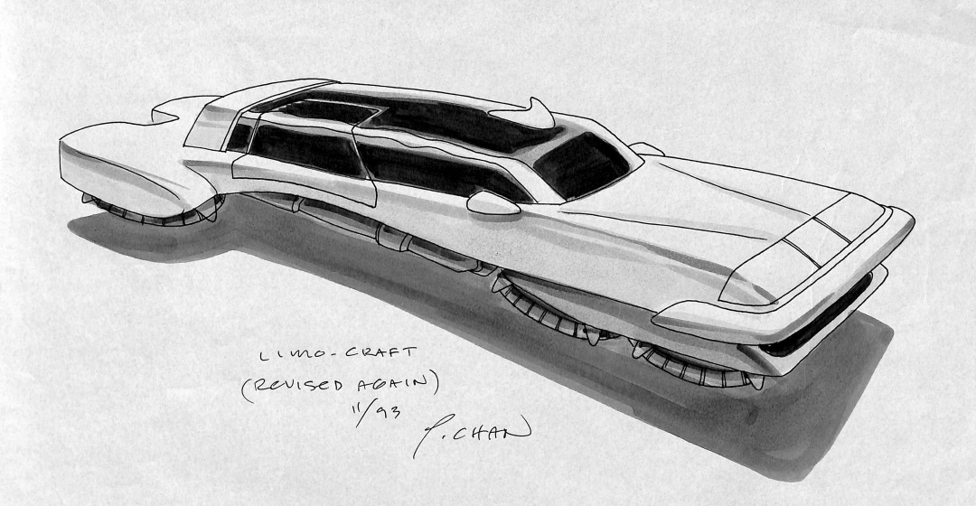 Larry: I gave one of our animators, Charlie Ramos, that shot. I want to say he was fairly new on the job at that point. I don’t even recall if we talked about it, but we knew there was a hood ornament on there because the model had one. I’m guessing it came from Peter’s concept sketch and then got built into the 3D model. For that one shot Charlie’s got that thing right up in our face. That’s gonna be the impactful shot! We’re not going to look at Ben’s face or anything, we’re just going to show it jump over the back of the limo and then on the front have it crash down and destroy the hood ornament. We probably just said “OK, well, you’re going to have to figure out what that looks like.”