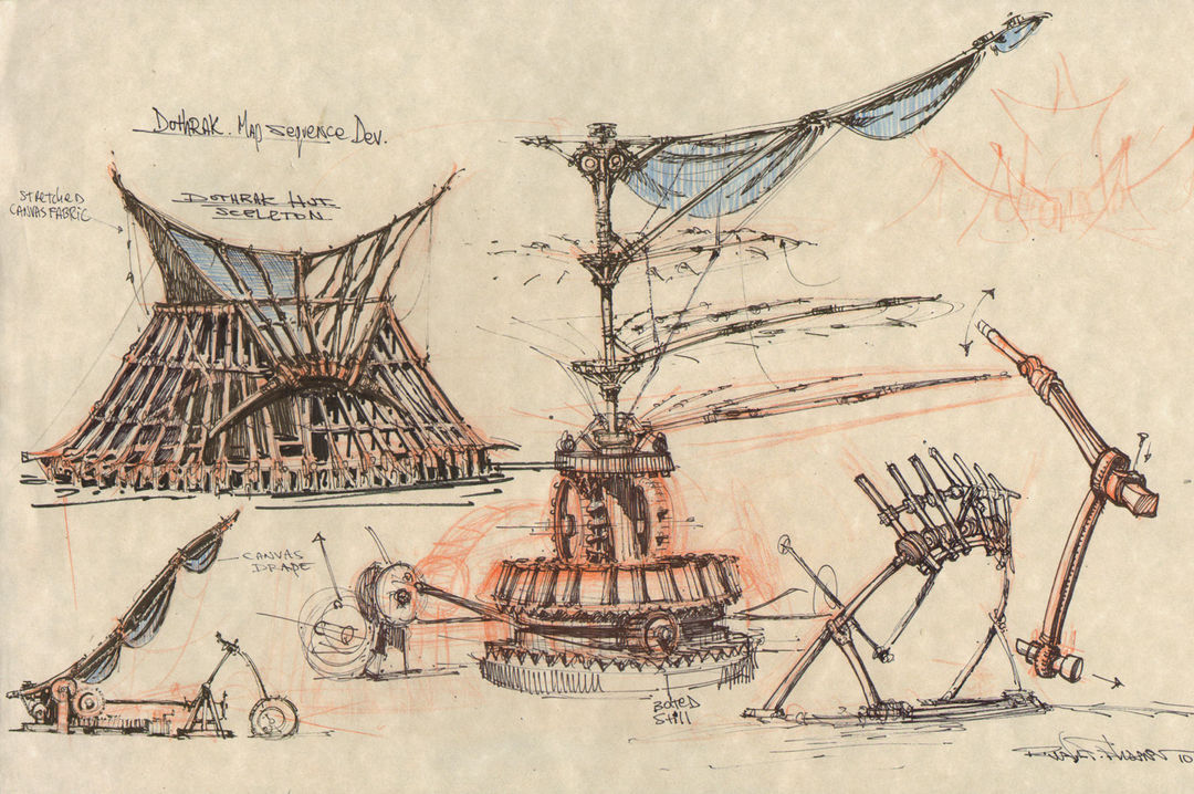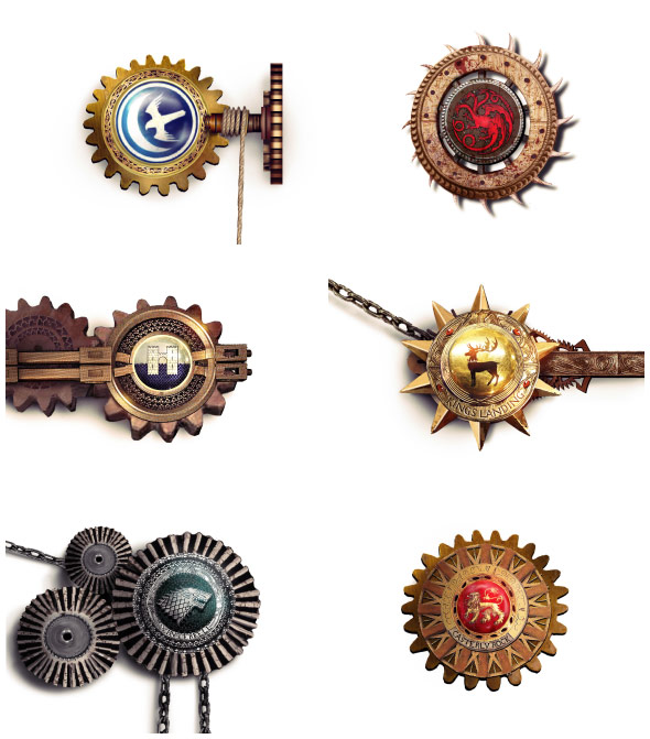 It was by in large the same people that I've worked with before, which is nice. They were very, very supportive of what we were doing. One of the things that came out of our conversations were the bands on the astrolabe — they’re the bands that surround the sun. We show three close-ups of those bands that tell the pre-history of the world in relief-sculpture form. They tell about dragons attacking Westeros. They tell about how the different houses on Westeros got together and defeated those dragons, and how those houses, represented by their respective animals, bowed in allegiance to the Baretheon stag.