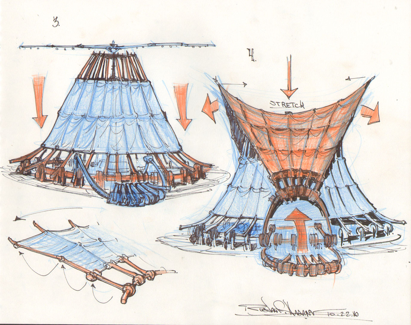 It was Hameed Shaukat (Producer), Rob Feng (Art Director), Kirk Shintani (CG Supervisor) and I just talking about what the different things should look like. A lot of the solutions were just pragmatic ones. The fact that I wanted to be able to move the camera anywhere led us to the fact that this whole world had to exist on the inside of a sphere, which took us a while to figure out.