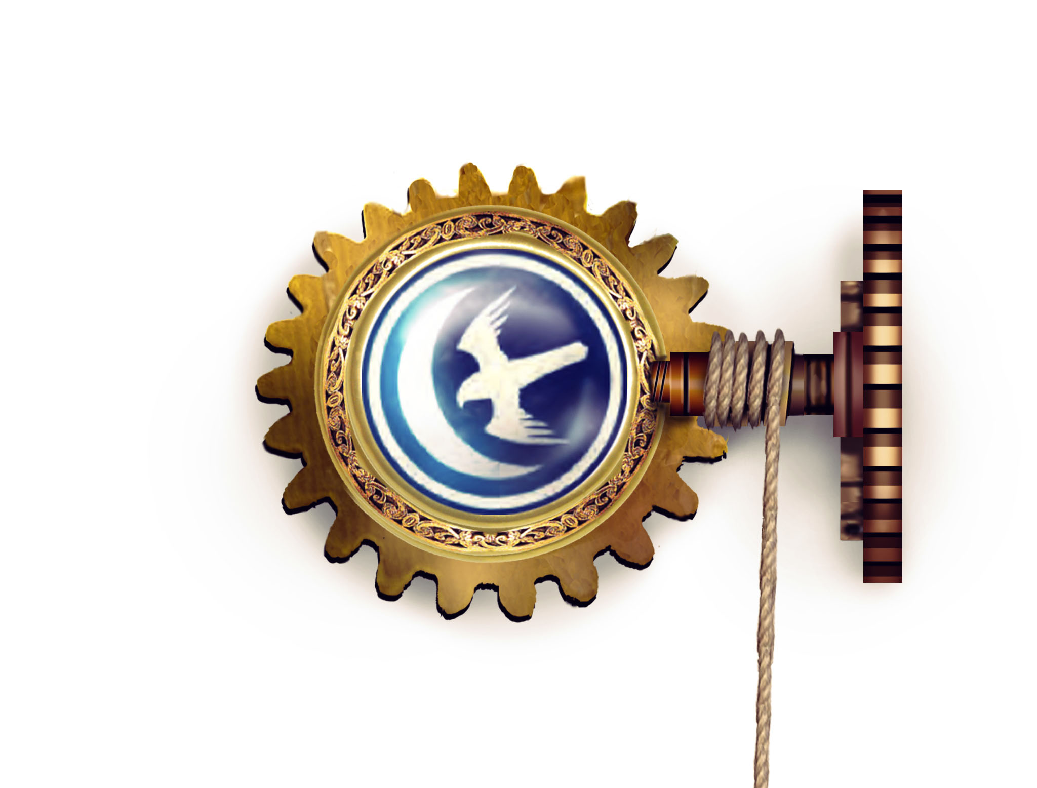 A fiery astrolabe orbits high above a world not our own; its massive Cardanic structure sinuously coursing around a burning center, vividly recounting an unfamiliar history through a series of heraldic tableaus emblazoned upon it. An intricate map is brought into focus, as if viewed through some colossal looking glass by an unseen custodian. Cities and towns rise from the terrain, their mechanical growth driven by the gears of politics and the cogs of war.