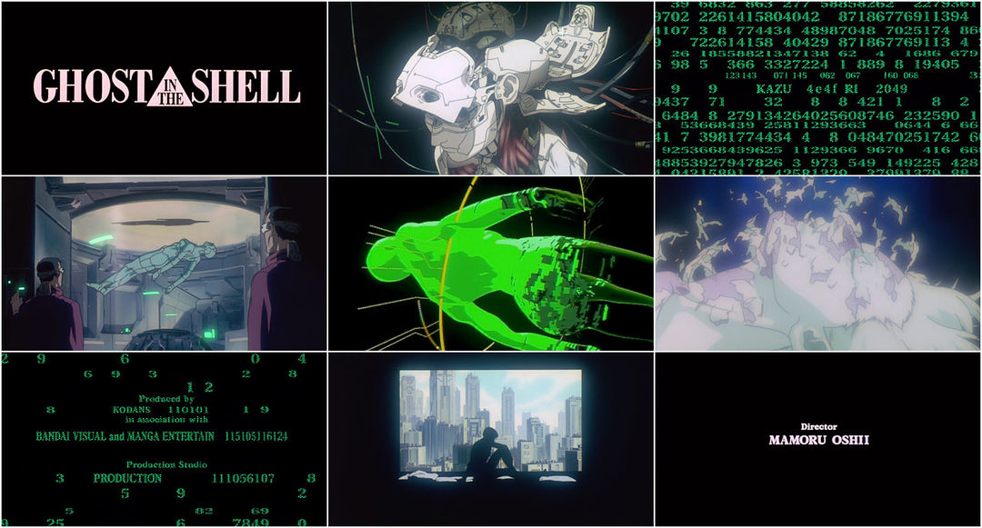A classic upon its release, the title sequence to Ghost in the Shell is a curious mix of 8-bit type animation, then-hi-tech CGI, dreamy anime and naked torsos, all set to composer Kenji Kawai's intimidating, minimalist score. It follows the construction of a cyborg from the inside out, first embracing a cold, tech-heavy aesthetic as the robot’s inner-core is assembled, feathering into softer imagery and warmer colors as the cyborg takes on a more human form, soon emerging from the mechanical womb as a young woman.