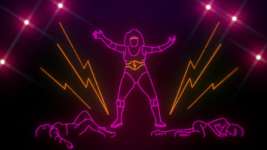 To execute the opening, the producers turned to UK outfit Shynola. Channeling their inner wrestlers for the project, the simple concept used by the studio disguises the complex techniques required to bring it to life. Rotoscoped footage of actual wrestlers gives the neon figures a vibrancy and realism that traditional animation could never hope to match, while graphic trails and geometric flourishes evoke motion design trends specific to the time period. Paired with Patty Smyth’s triumphant rock ballad “The Warrior” and the result is both a gleeful throwback to a bygone era of wrestling and a celebration of the colourful personalities that made 1980s sports entertainment so much fun.