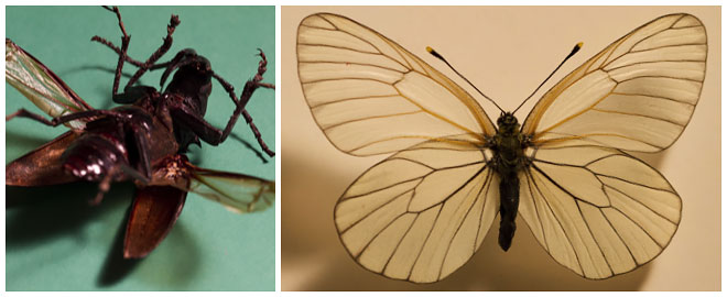They were also dead and weren't going to get better. We improvised ways to articulate limbs so we could use them for the butterfly legs bursting out. The abdomen would achieve the look for the cocoon. We also had some exquisite black-veined butterflies shipped in but the preservation process had caused the wings to be too stiff, unmalleable. Miki made a rig for them that countered my creaky floorboards and we captured some alluring textures. The patterns are so ephemeral, you could brush them off. The hero now rests entombed in a cardboard crypt: a mini Rice Krispies box somewhere.