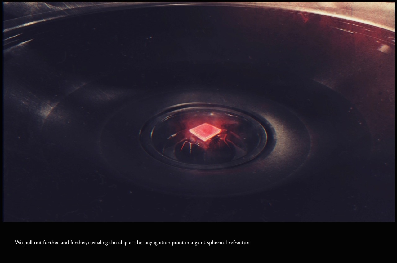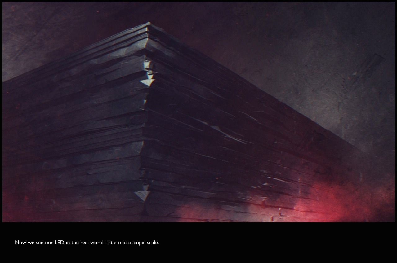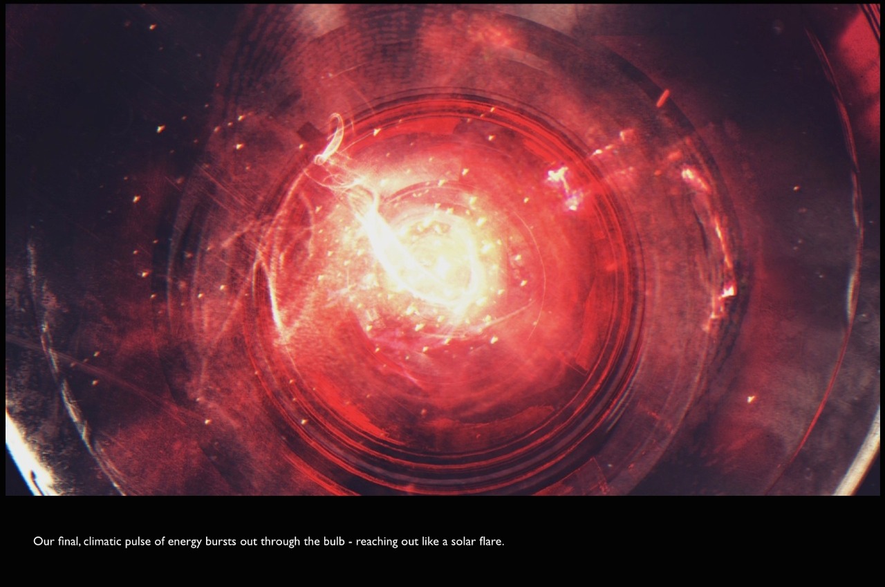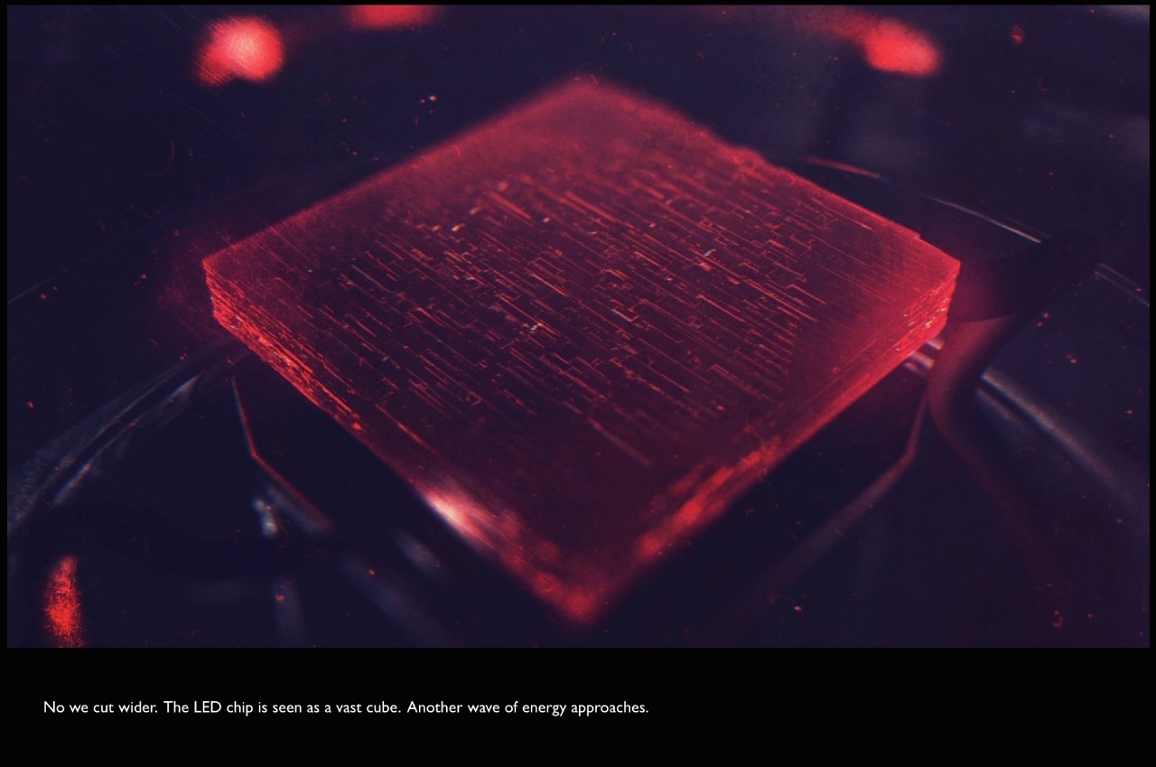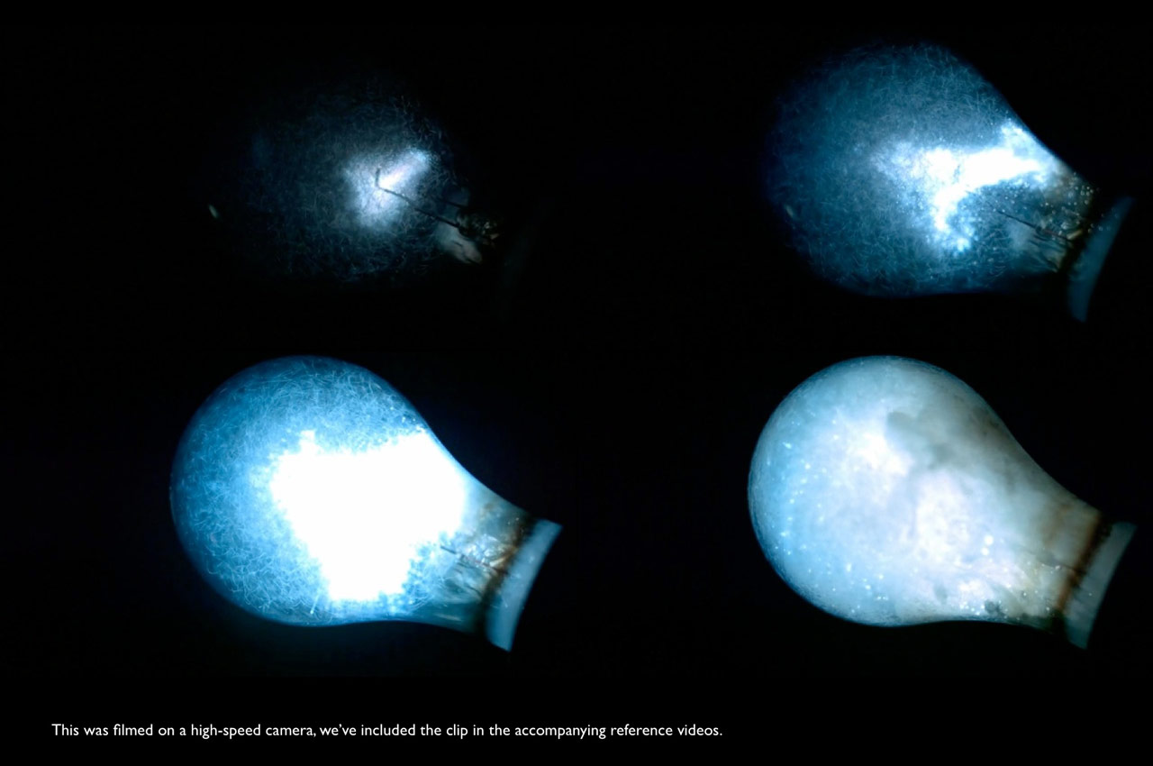Patrick: To place the era, we used a computer indicator LED instead of a normal bulb. We turned to Raoul to envision an LED bulb flickering to life at ultraslow motion at intense macro scale.