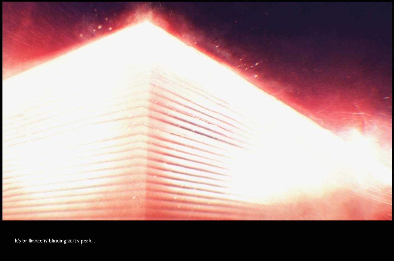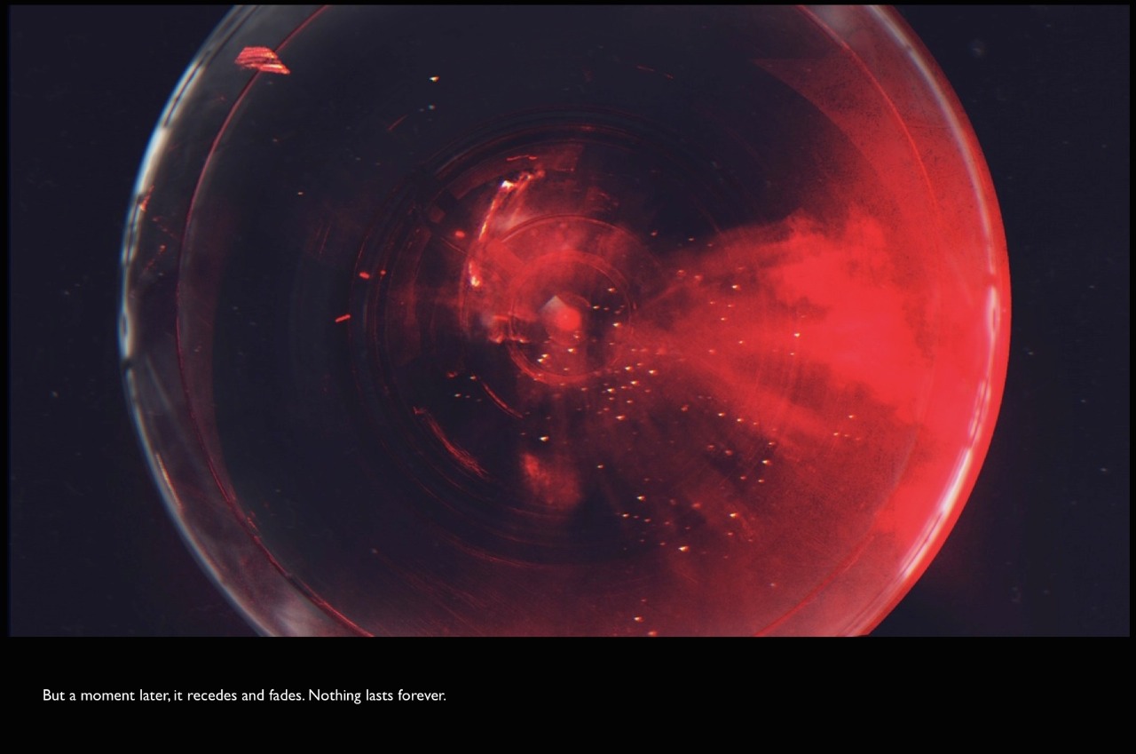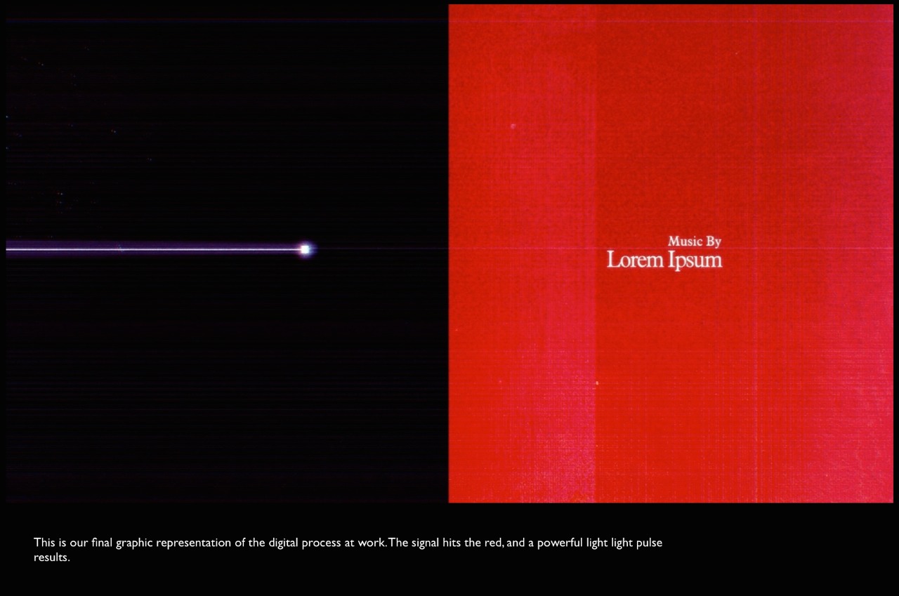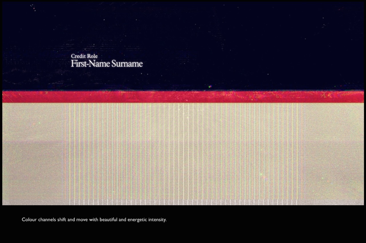 Patrick: We experimented with many techniques to give it a feeling of constant flux and energy – textures, grain, undulating light flares to make the red/magenta feel electric and alive, never flat.