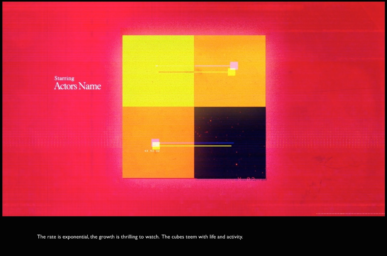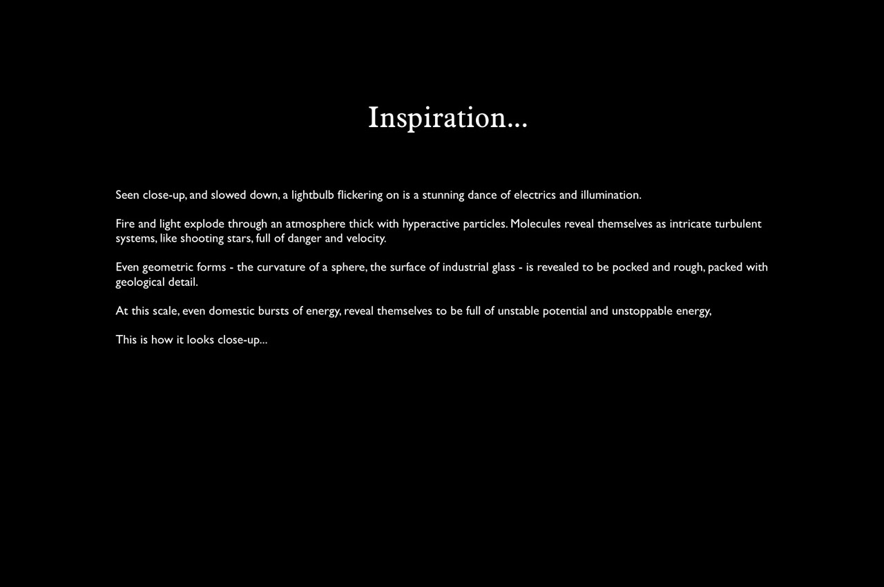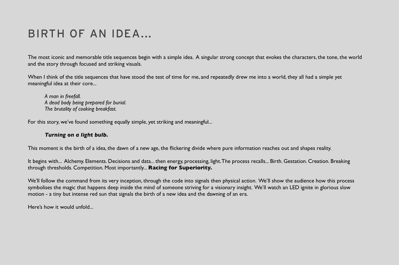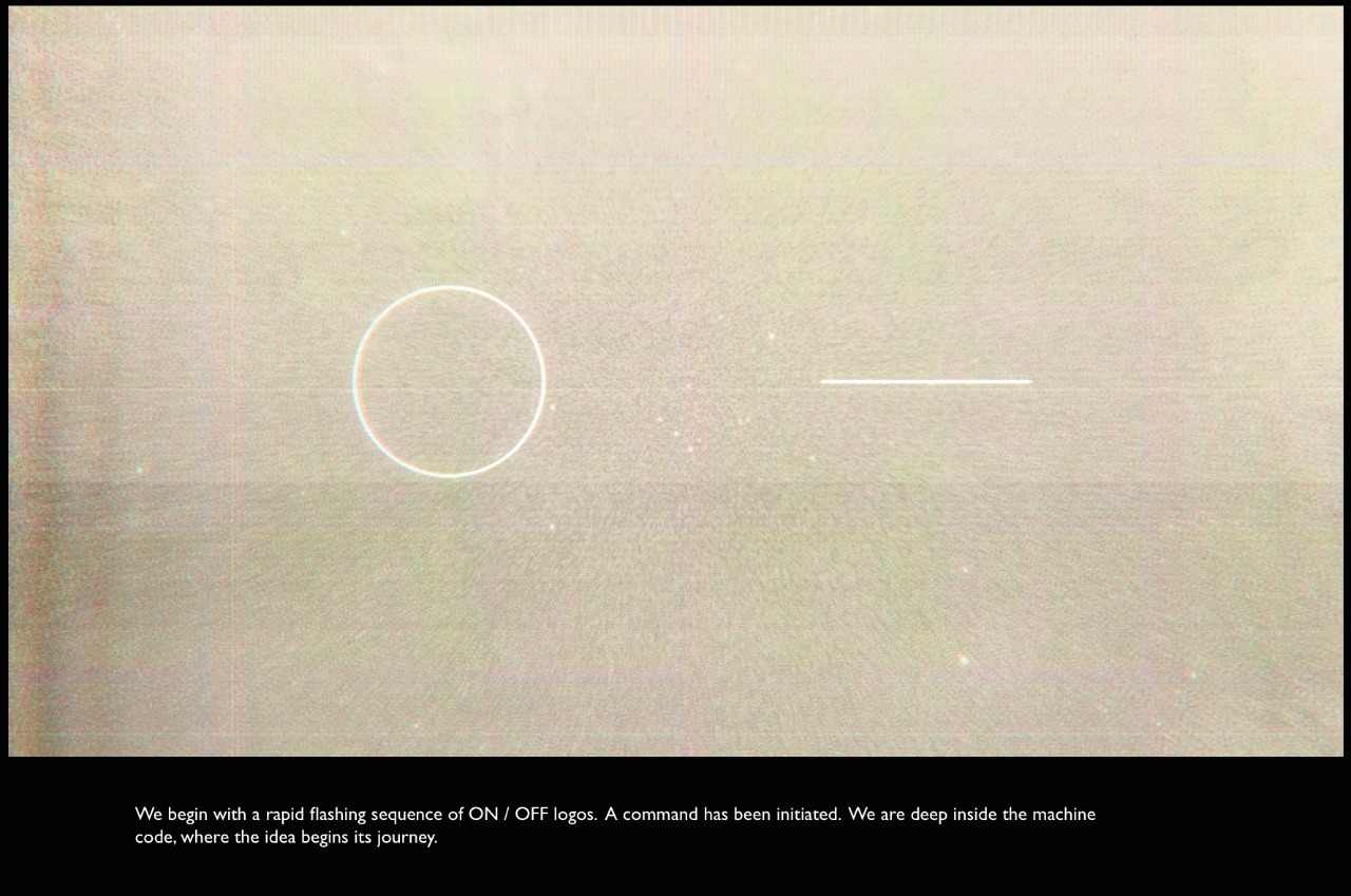 So the idea was simple – let's turn on a light bulb. There was a very challenging but exciting task at the core of this – make a sequence about the computer era that was about people, not machines. Daunting.