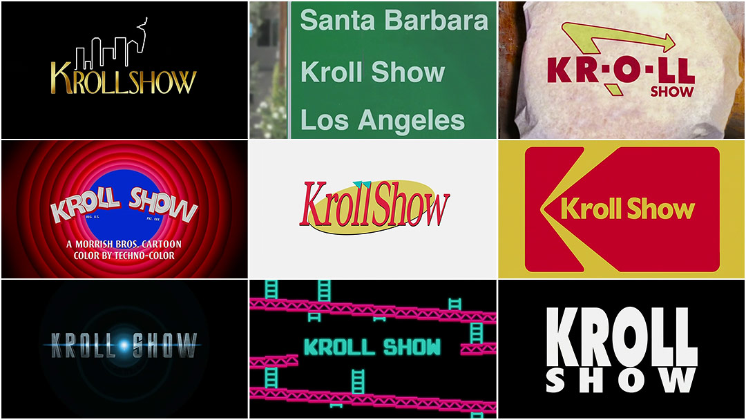 I am a big fan of title design and wanted to create something that was short and sweet – and in no way resembled a television show's titles. We use a lot of title sequences within the show, so to do another intro for the show itself seemed redundant. I just wanted a blast of energy to launch it. I had recently watched Enter the Void and of course was blown away by the titles. Apparently a lot of people were, because I found pretty quickly that Kanye and numerous others had aped the exact look of that opening. Since the Kroll Show inserts Nick into a lot of genres and does it convincingly, with a lot of attention to detail, I thought that putting his name into a lot of really recognizable logos and TV openings and blasting through it would be awesome!