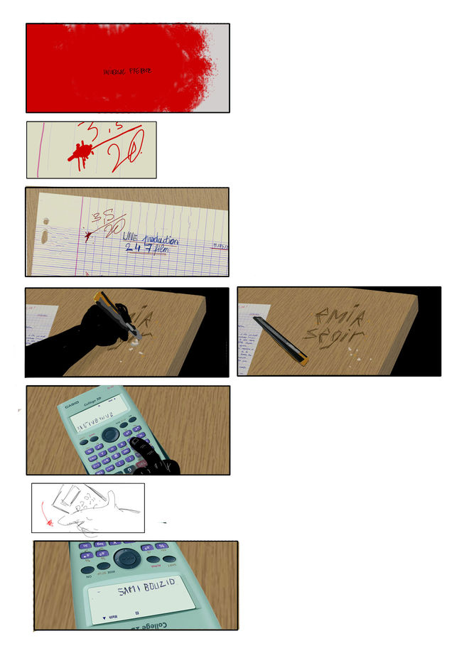 AB: Not so much! We had to decide quickly. They were starting to shoot so they didn’t have much time to deal with the opening sequence. I remember I proposed something based around the credits, without any characters, where the typography was inlaid in the universe – names engraved on school desks, on a chalkboard, graffiti in school restrooms – but it was not very original. I used that as a base to work on something more narrative.