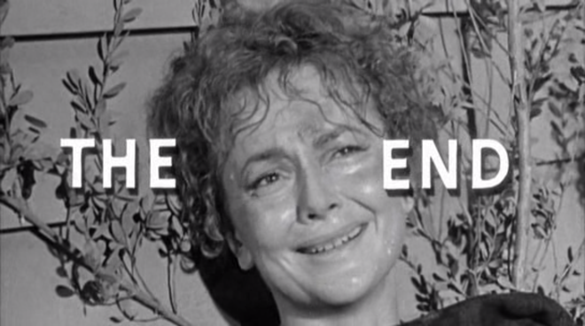 The Lady in a Cage end title card featuring Olivia de Havilland
