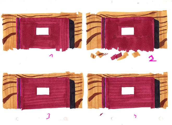 François: We were looking for how to make it look vintage but still in connection with the movie and as different as possible from what we had done so far. So we chose to use as little digital as possible. We had not considered how much work it would really require! But this was the right time to try it, especially since Julie was looking for something that would look “arts and crafts”.