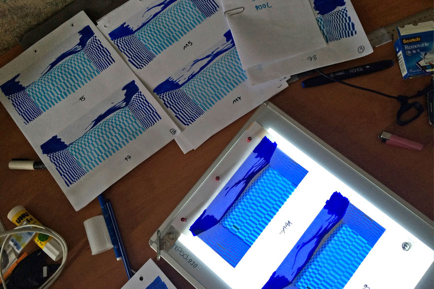We used light tablets and handmade pegbars. Pegbar hole punches are crazy expensive and rare, and the paper was not the right size in order for us to scan the drawings, so we created our own hole punch and pegbars.