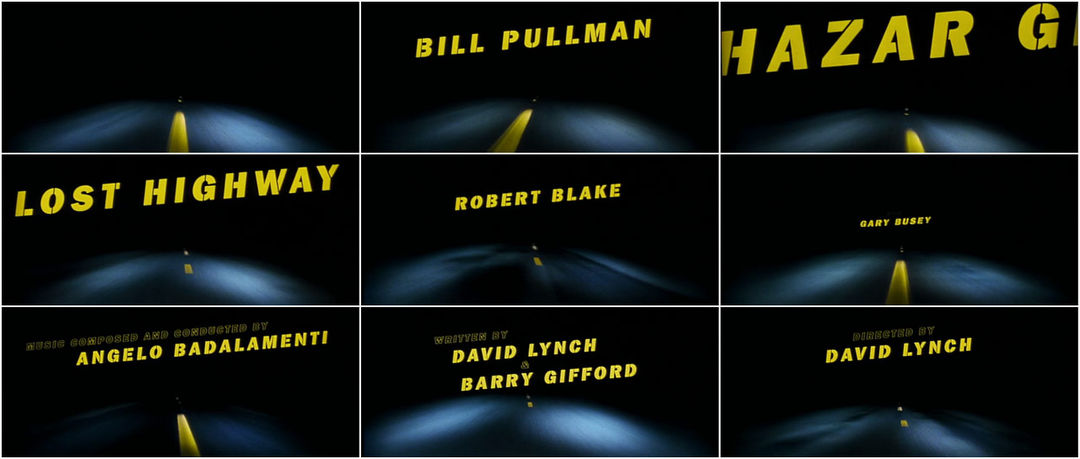 Plunging the dark horizontal depths of a possible collision or arrival, David Lynch and title designer Jay Johnson borrow from Jack Cardiff’s The Girl on a Motorcycle and Monte Hellman’s Two-Lane Blacktop for the speed-dream start to Lost Highway. The variable velocity puts you ill at ease, while the atmospheric thrust of David Bowie and Brian Eno’s track “I’m Deranged” imbues the cryptic mix.