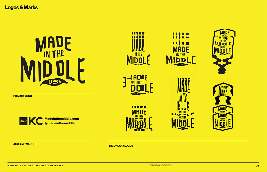 Images from the brand guidelines for Made in the Middle by Alex Anderson and The Carpenter Collective