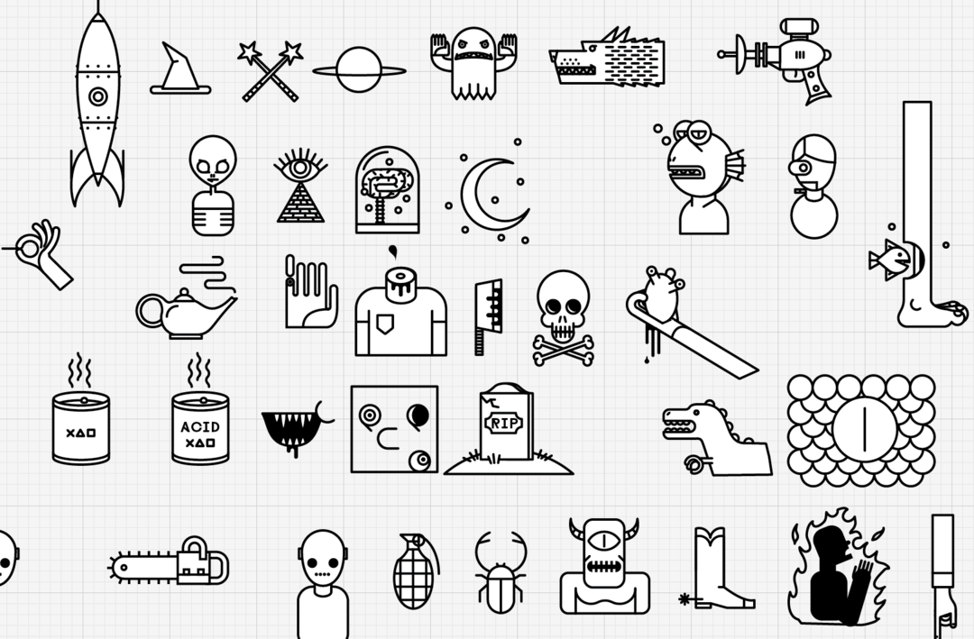 Various concepts for icons, drawn in Adobe Illustrator