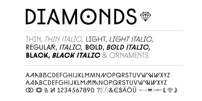Samples of the Diamonds typeface designed by Hannes von Döhren in 2012