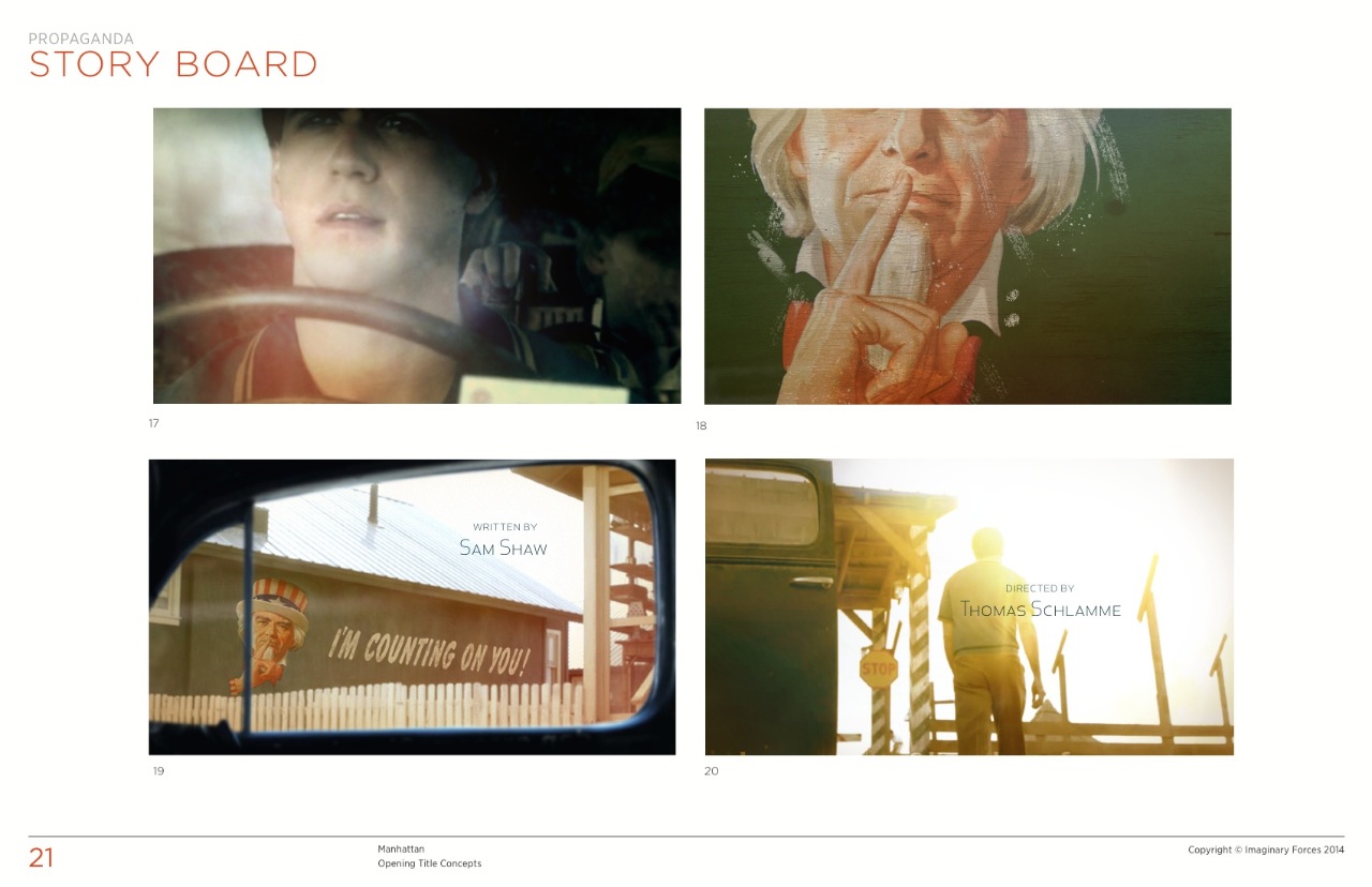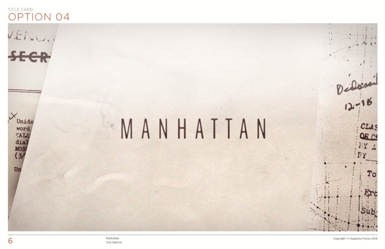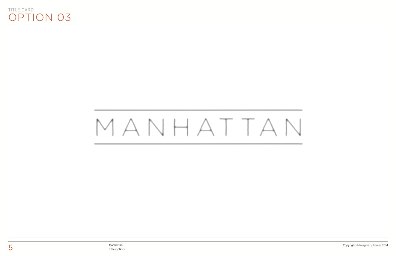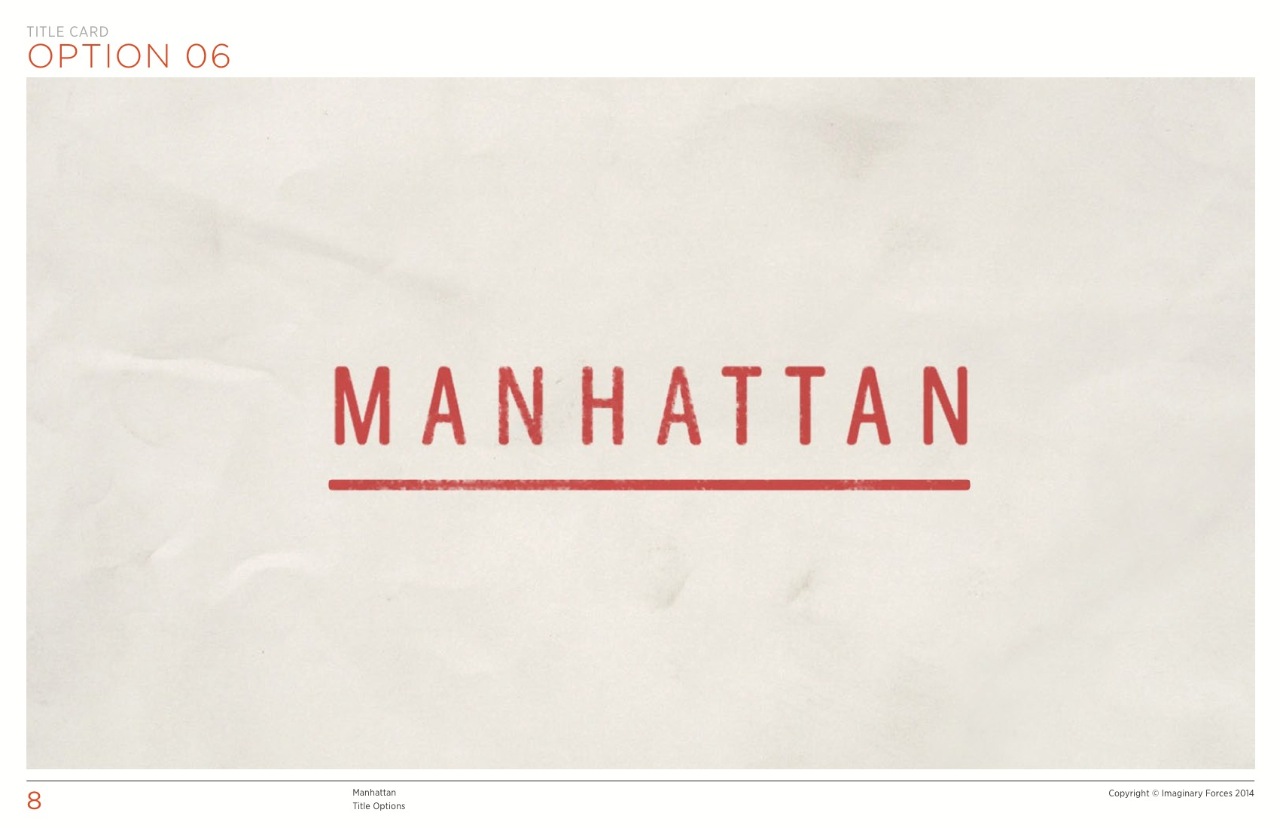 Dan: Sam Shaw [Manhattan's creator] and Peter Frankfurt [Imaginary Forces co-founder and executive creative director] go back a ways, but for whatever reason we hadn’t been able to line up on a project before this came in.