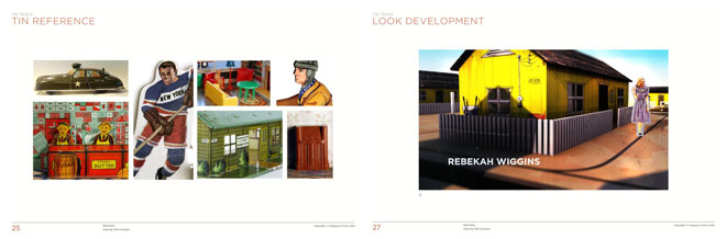Jon: There was a fourth concept as well, which was still a fairly broad idea by the time we presented, but we thought there was potential there. We wanted to re-create the town using tin toys of the era: brightly colored people, places, vehicles, all mounted on these directional tracks set into the floor. It was fun, kind of cheeky, but also a little creepy.