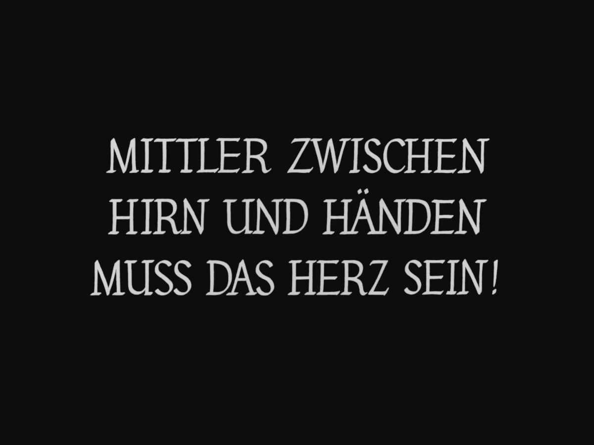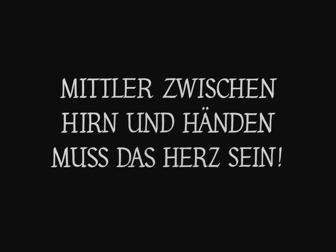Card from Metropolis (1927) which says, in translation from German: THE MEDIATOR BETWEEN HEAD AND HANDS MUST BE THE HEART!