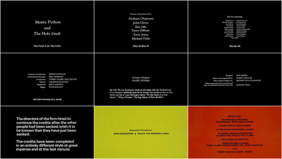 Terry Gilliam: One great thing about Python is we used to always play around with titles and text. Since there was nobody to stop us we just had fun. The first time we showed this to an audience they just couldn’t believe the world could be turned upside down… normally we watched films with people speaking Swedish with English titles but [not us], we did it backwards.