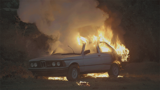 [laughs] That's hilarious! And how did you create the shot of the burning car at the end?