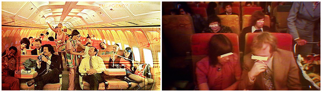 I really love that plane interior shot. I love the transition, the colour, the warmth. It's very much of the period and so that for me is my favourite. That came from Boeing, actually. They dug through their archives to find that. So all those people on the plane are actually Boeing employees. That tracking was in there and it was very shaky so we had to stabilize it. We had to freezeframe heads, we had to mask people's faces. I was always very adamant that it had to be there.