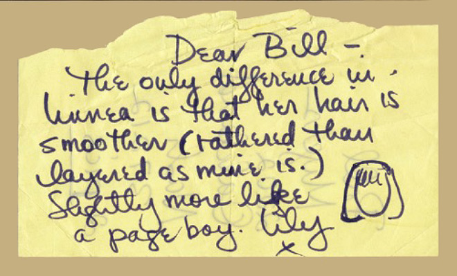 Bill: I wasn’t there for the shooting of the domestic scenes with Lily Tomlin, but I happened to see her in the bookstore one day. I said “Miss Tomlin, I’m doing some artwork with your character in it and I wondered how you had your hair in this scene.” She took out a tablet and drew her hairstyle for me. I still have that! So I used her drawing to get the bangs.