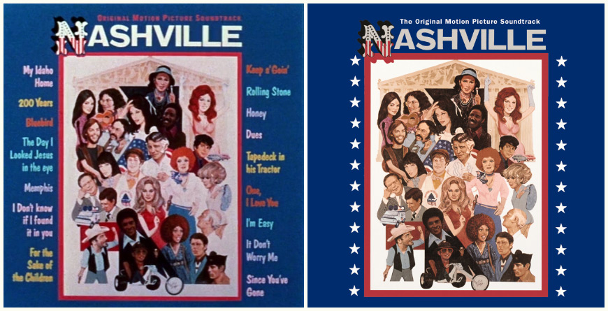 Image set: The Nashville album art as it appears in the title sequence (left) and on the soundtrack cover (right).