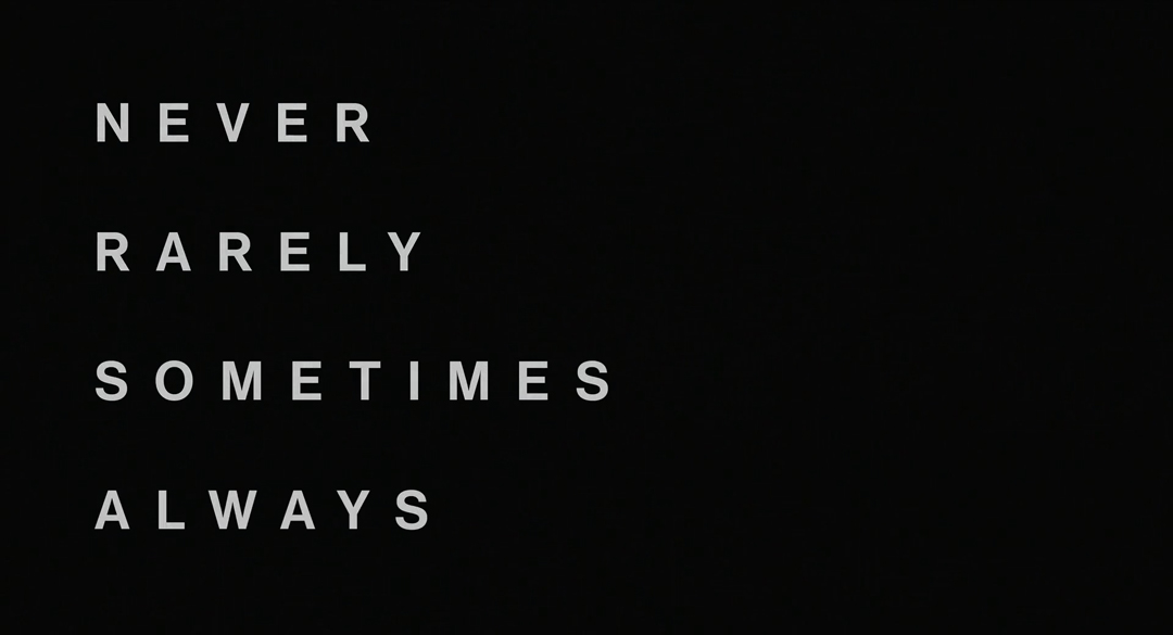 Never Rarely Sometimes Always (2020) title card