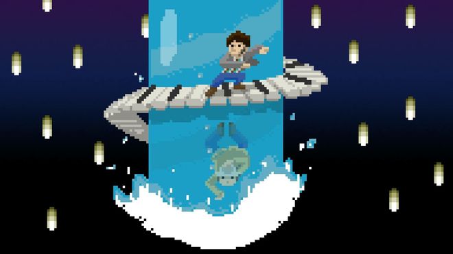 Josh: We actually ended up contracting that out. One of our editors Rob [Hyland] has a good buddy named Matt Woodcock who as a hobby just started playing around with pixel art and randomly, before we started working on that episode, had made a still that’s actually in the sequence now – of Matt swimming down the waterfall as Jay goes around on the keys. He had done it as just like a cute little 8-bit thing.
