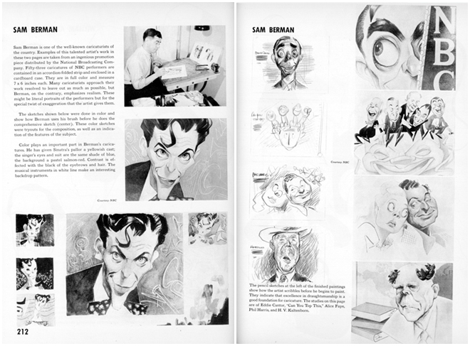 Sam Berman explains his methods in The Complete Guide to Cartooning by Gene Byrnes, 1950