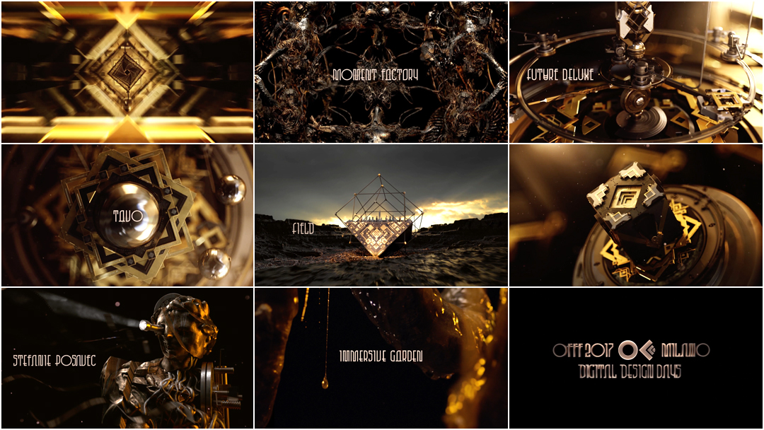 In the latest title sequence produced for creative festival OFFF, Director Onur Senturk presents an Art Deco-laced vision of a dark and twisting future where metallic figures contort into patterns and glowing machines operate with mystical serenity.