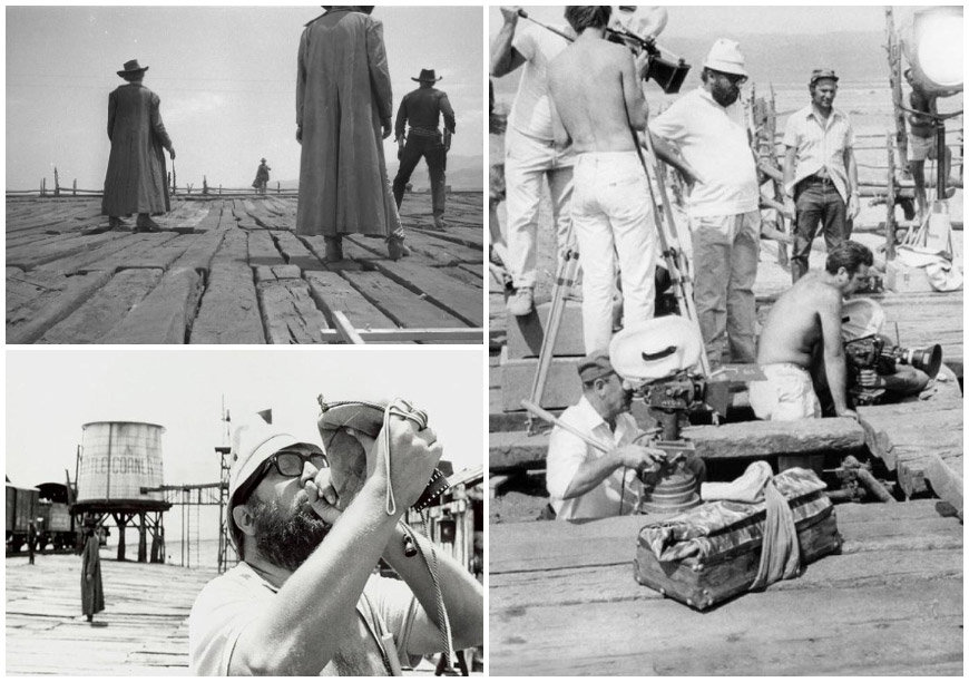 Image set: Director Sergio Leone and crew shooting the Once Upon a Time in the West opening in La Calahorra, Spain, 1968.