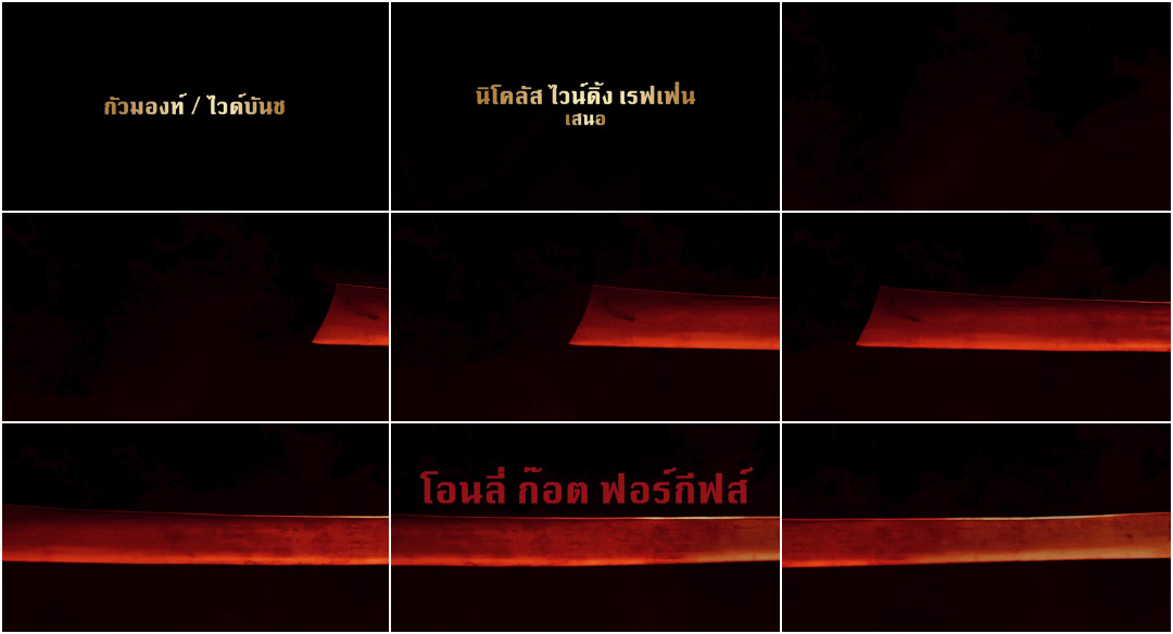 SUPPLEMENTARY: Only God Forgives (2013) end titles Credits Title Designer: Jabali Ravn Music: Cliff Martinez Support Art of the TItle Related Bronson summary Drive title only The Neon Demon interview Pusher title only Cowboy Bebop summary Samurai Champloo title only