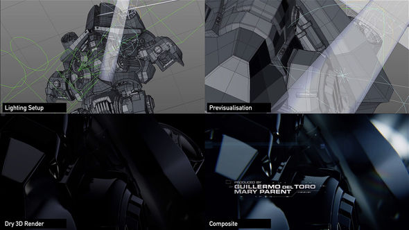 It was very quick. We gave them our models – our robot models and our kaiju models – and they came back with five different types of sequence. One that was manga and then the one that you see in the film, which was like a beautiful, very sexy machine, black with very saturated colours. We art directed it over the course of a week – I said go brighter with this, go less with this, more reflectiveness on this – and in two weeks we had the sequence. I think it is one of my favorite things about [the movie]!