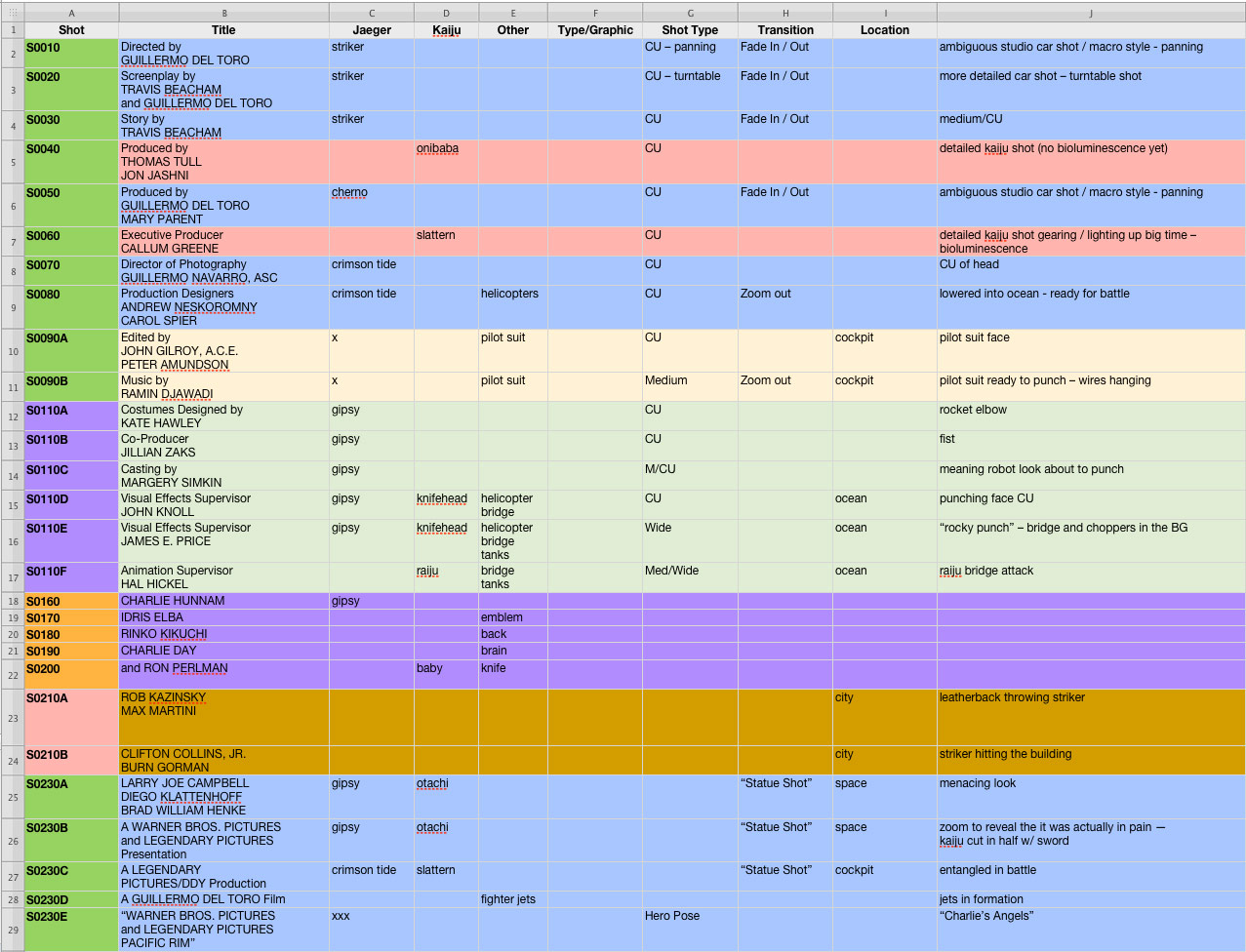 ML: Since we really didn’t have time to do an edit, we created a “virtual conform” through a spreadsheet that outlined all the shots we envisioned, where they would be physically staged, which characters or monsters would be in each shot, the title cards to feature, and what assets would be needed for each one. We outlined the moments of impact, shot types to create a narrative arc, and essentially projected the overall structure of the sequence.