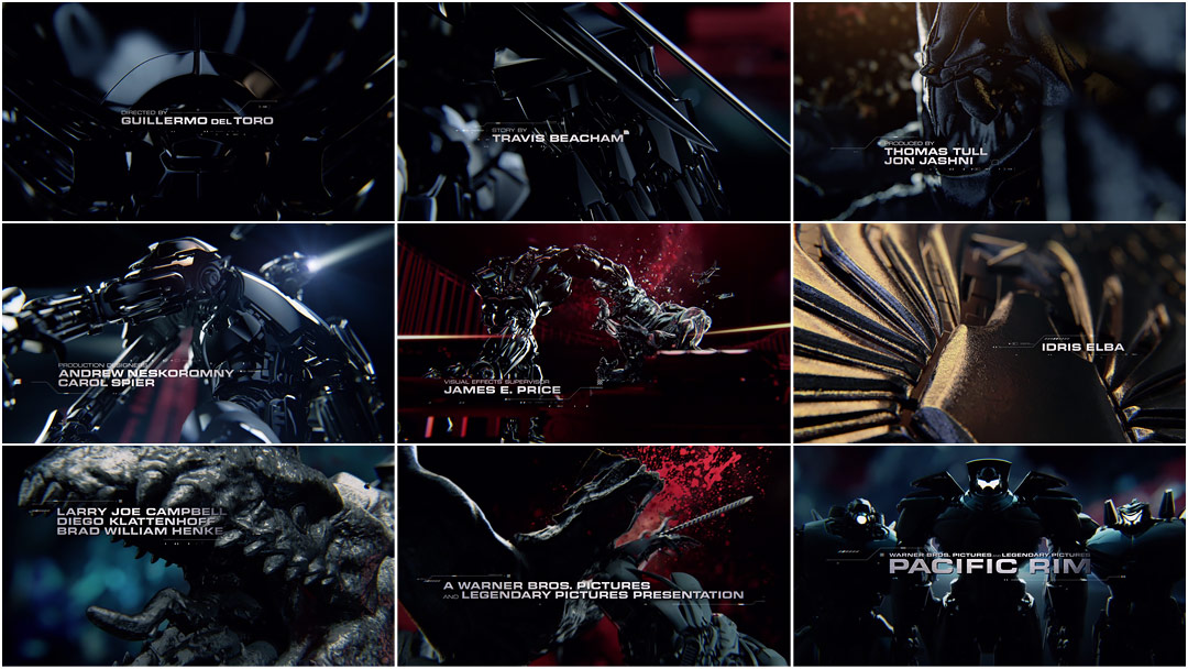 For moviegoers who survive two hours of massive, nuclear-powered robots beating the living hell out of alien monsters from the bottom of the ocean, Imaginary Forces’ sleek and statuesque main-on-end titles for director Guillermo del Toro’s Pacific Rim are the calm after the creature-punchin’, bot-stompin’ storm.