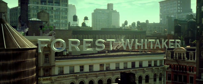 Jeff: Some of the title shots had subtle VFX work and others were more involved. For instance, on the “Forest Whitaker” card we replaced the water tank with a CG version and added some steam.