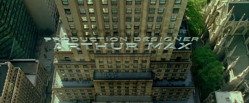 William: One thing that people forget is that movie credits are actually legal documents, and follow certain agreements determined by lawyers and guilds and agents. So there was some fiddling of the order of names, which meant that a name set for one plate had to move to another, and that causes big ripple effects since these weren’t just burn-ins over footage. Names had to be reanimated and rendered in 3D. We had to add a name unexpectedly later in the process. I think the plate with the Chrysler Building, that now has James and Angus’s names, was added when a new credit was added into the sequence. I think it’s a fully digital shot too, like Arthur’s.