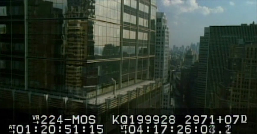 Once it was clear how it was going to work, Kevin took a VFX splinter crew to NYC to shoot the plates. He rolled 35mm running footage and 65mm VistaVision for stills. Kevin at one point had shot a series of materials that would have let us build a long, one-take section in the middle of the sequence, moving down and around St. Patrick’s Cathedral and back up. A giant fly-through, like we were pigeons. But in the overall tone of the piece, the cuts were so much more effective. If it had some slick virtual camera work in it, your brain would have said, “Oh, right, visual effect. I know what this is.” But the cut shots didn’t feel that way – they never distract you.
