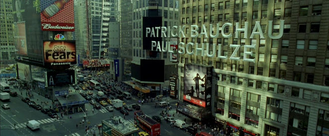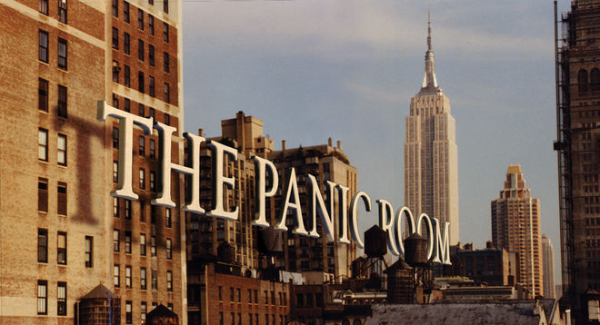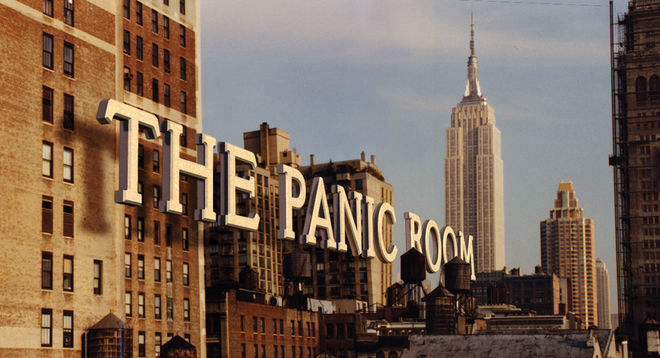 In 2002, film reviewer Caroline Westbrook wrote, “Style is evident right from Panic Room's superb opening credits, which are laid out like signs and billboards across the rooftops of New York.” One of the real electronic billboards in the sequence actually flashes the phrase “Face your Fears”.