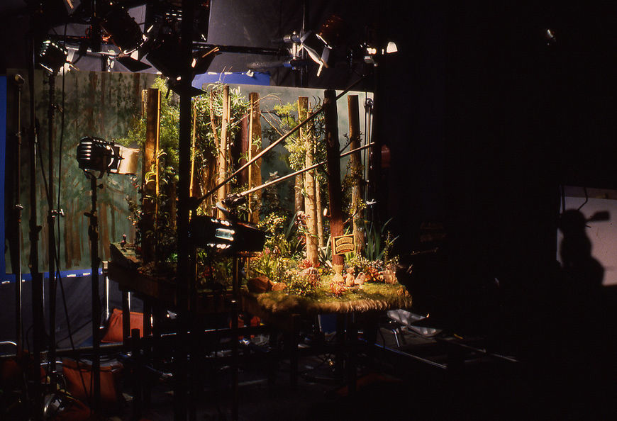 Camera and model set-up for the opening forest scene of the Pee-wee's Playhouse title sequence