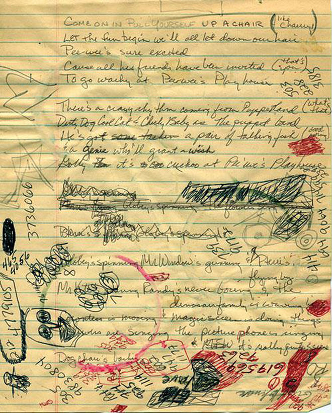 George McGrath's first draft of the Pee-wee's Playhouse theme song lyrics