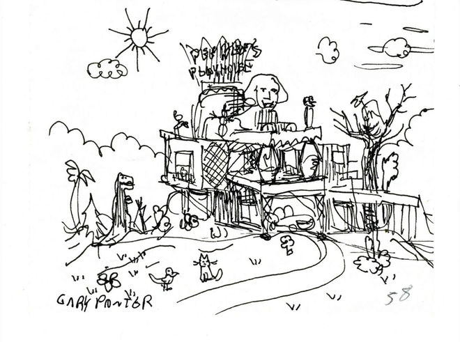An early sketch of Pee-wee's Playhouse by Production Designer Gary Panter
