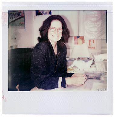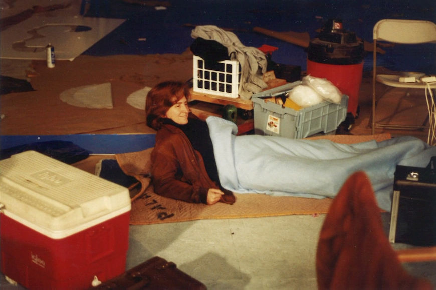 Prudence Fenton takes a break during production of the Pee-wee's Playhouse opening sequence, 1986