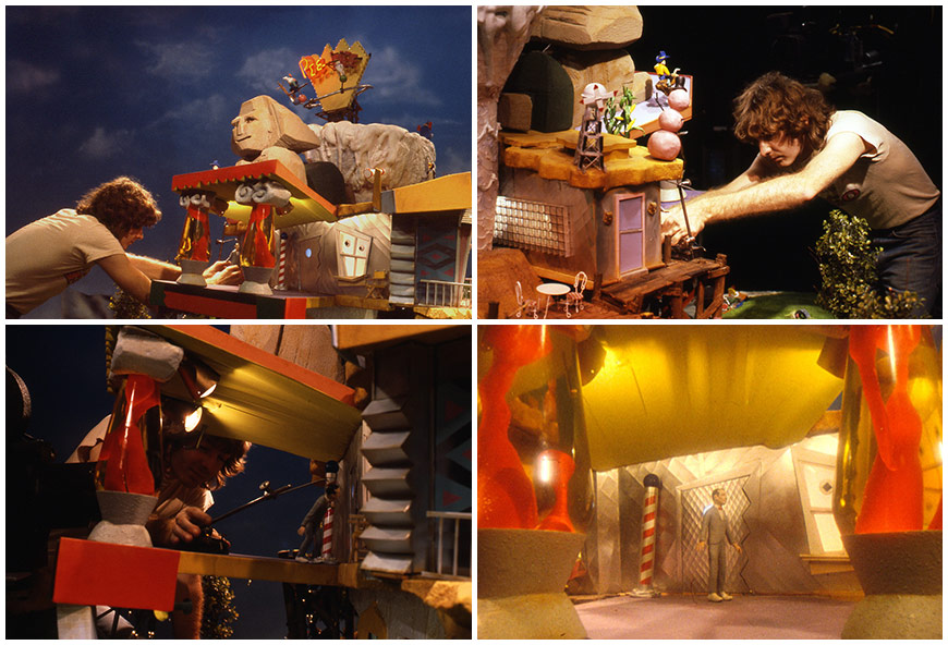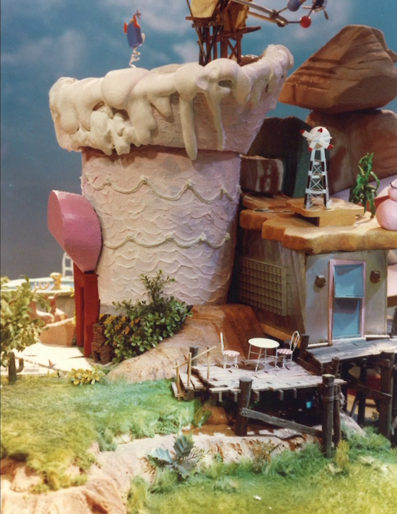 Phil: It was originally of a much larger scale. It started in outer space, zooming through the planets toward Earth, a stop-motion cartoon version of the universe. Then you pick up on the zoom into the forest, that was originally Ric Heitzman’s vision of it. He did a lot of the design for the exterior of the playhouse. All of the design for that was created rather intricately. I was directing the dinosaur family sequences – the dinosaurs that live inside the wall – and I was working with my wife on some of the ant farm sequences, and I was asked to direct the opening title sequence. I did a lot of storyboards. We started the show in the spring, and it had to be on the air by the fall. We had to cut down the scope of it a little bit.