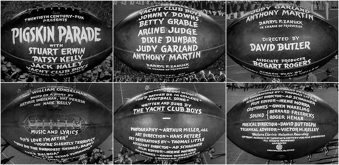 SUPPLEMENTAL: Pigskin Parade (1936) end credits Credits Title Design: uncredited Support Art of the TItle Related He Got Game summary The Day Today summary Those Daring Young Men in Their Jaunty Jalopies summary The Adventures of Robin Hood summary Nothing Sacred summary Show Boat title only