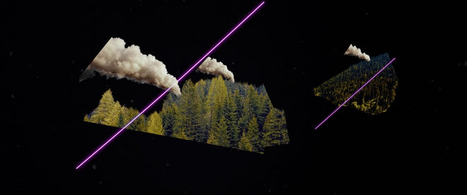 Pablo: Yes, we grabbed photos from stock sites and used them as maps for 3D geometry. Most of them are recreated in 3D. The images come from the idea of the forest. Other than the reference strings, we didn’t shoot any of the elements. The dust particles that float are filmed by us but not the elements, the flowers opening and such, that’s stock timelapse. They’re not trying to hide or anything – it’s okay to use stock imagery and flowers, it’s just about how you use it.