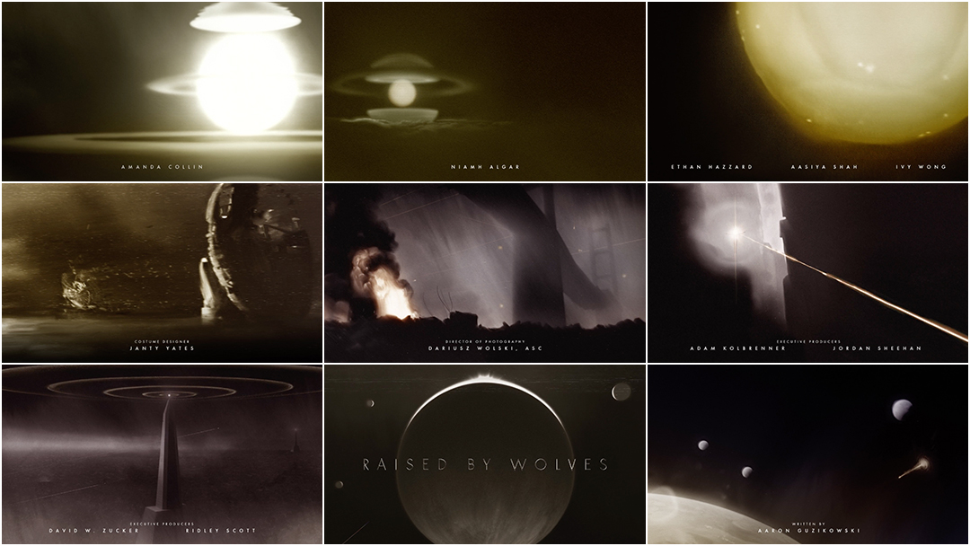 So it’s no big surprise that Raised by Wolves, created by screenwriter Aaron Guzikowski and with Scott on board as executive producer (and director of the first two episodes), uses a similar look for its titles.